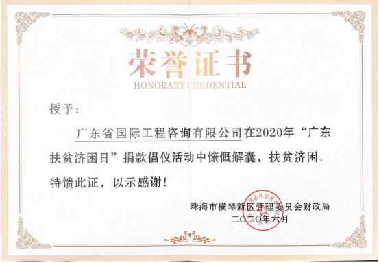 • 我公司積極參與橫琴新區(qū)2020年“廣東扶貧濟(jì)困日”活動(dòng)